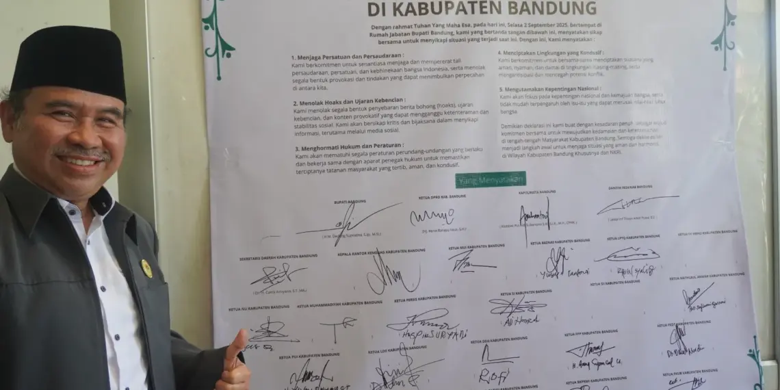 Acara diakhiri dengan penandatanganan Deklarasi Damai oleh Bupati, Forkopimda, pimpinan ormas Islam, dan tokoh agama. Deklarasi berisi komitmen menjaga keamanan, ketertiban, dan kedamaian, serta menolak segala bentuk kekerasan dan provokasi yang dapat merusak persatuan bangsa. LDII Kabupaten Bandung menegaskan komitmennya untuk terus berkontribusi dalam menjaga kondusifitas Kabupaten Bandung.