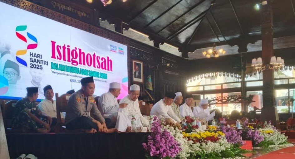 Para ulama memimpin doa bersama, menciptakan suasana spiritual yang khusyuk. Istighosah ini menjadi simbol persatuan dan harapan untuk Kudus yang lebih baik.